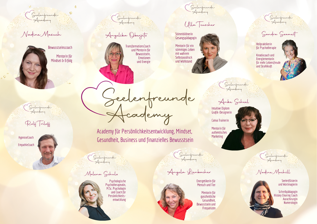 Die Seelenfreunde Academy ist ein Pool von Coaches, die ihr wertvolles Wissen in die Welt tragen wollen. Wir möchten ein Beitrag sein für mehr Bewusstsein und mehr Möglichkeiten. Wir stehen ein für persönliches und berufliches Wachstum und Transformation.