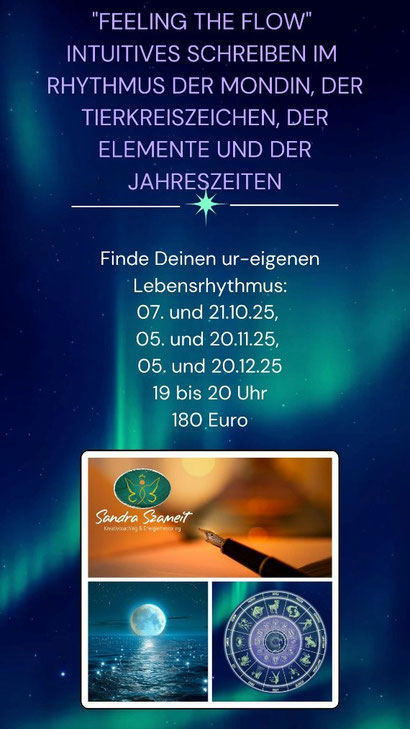 „Feeling the Flow“, Intuitives Schreiben im Rhythmus der Mondin, der Tierkreiszeichen, der Elemente und der Jahreszeiten.