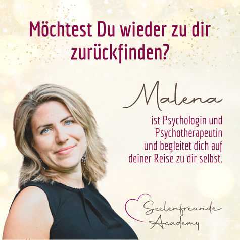 Hallo, ich bin Malena, M. Sc.-Psychologin, Psychologische Psychotherapeutin (tiefenpsychologisch fundiert) und Coach für Persönlichkeitsentwicklung. Mein Anliegen ist es, dich dabei zu unterstützen, dich selbst zu finden, wertzuschätzen und zu lieben und damit auch die Beziehungen und die Partnerschaft leben zu können, die dich wirklich erfüllt!